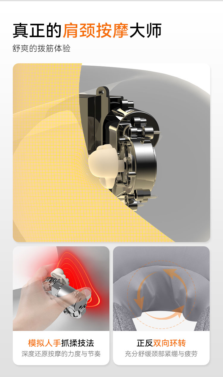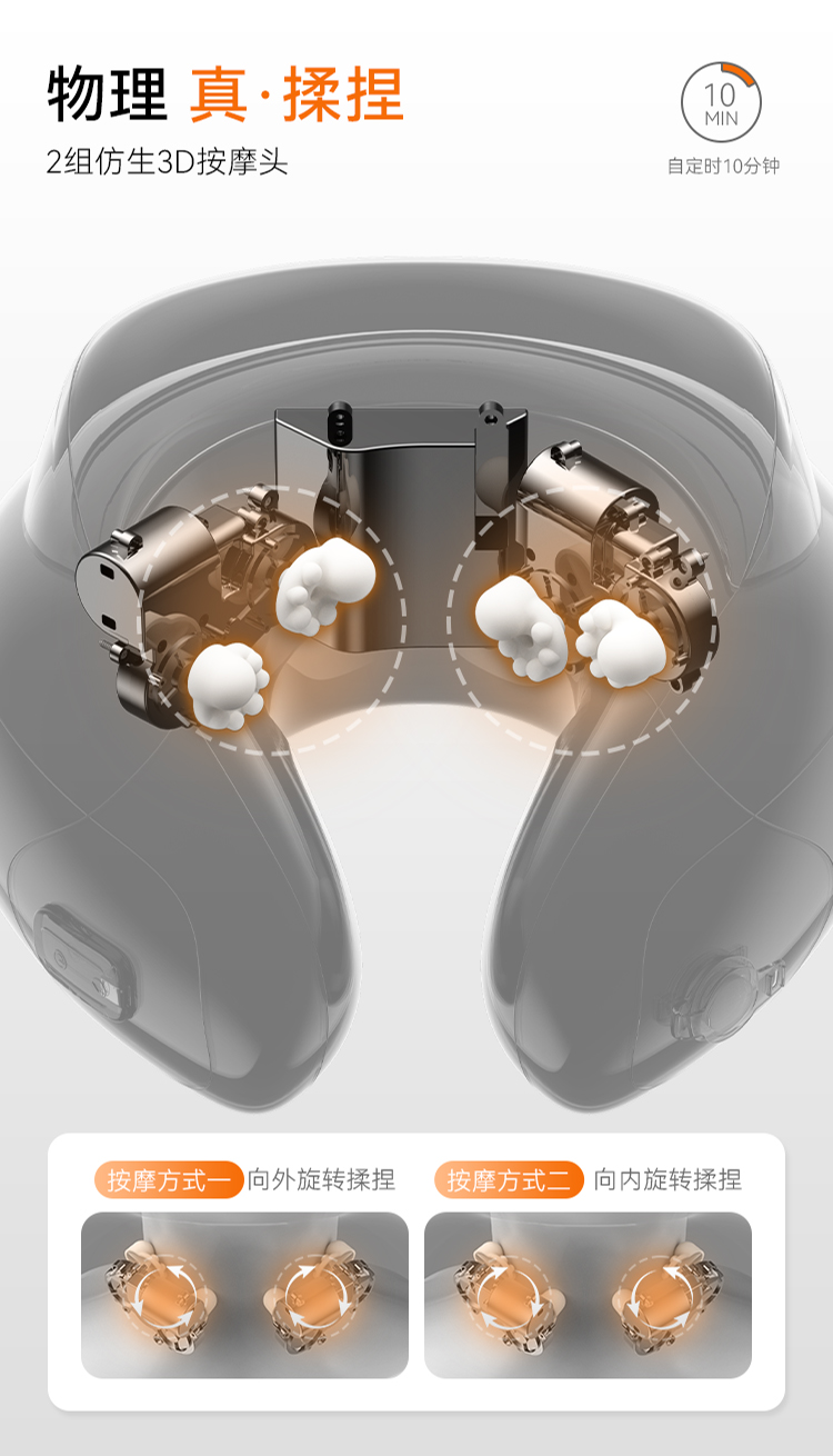 2、2组3D按摩手,正反双旋模式,再现指腹真实感,放松全颈;