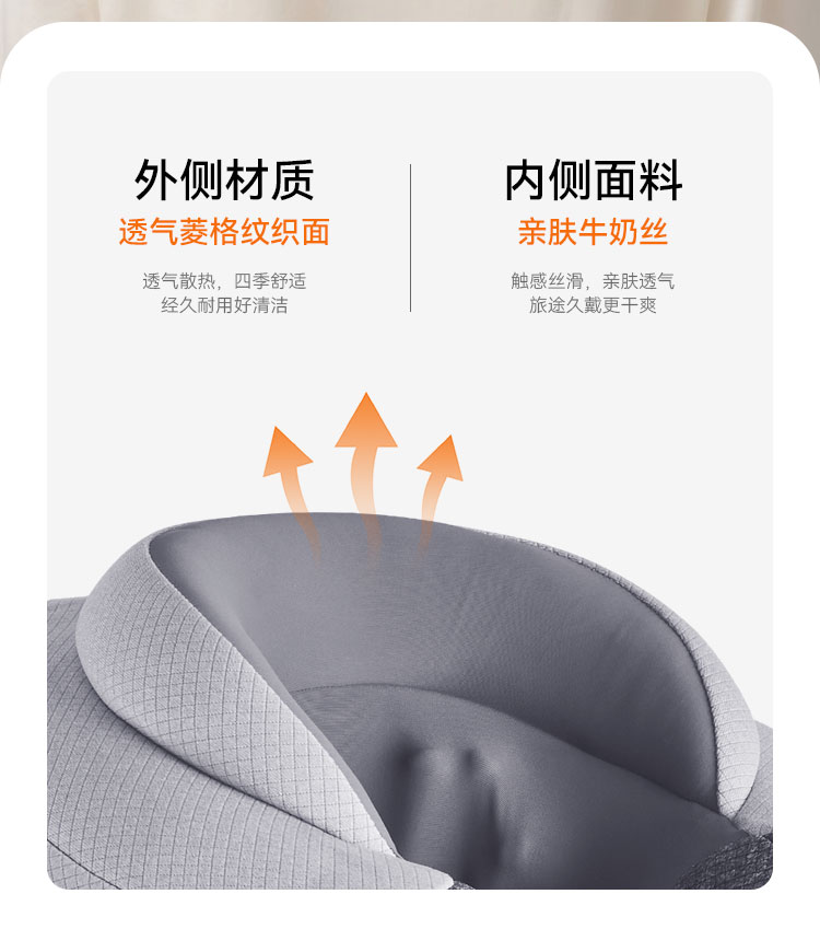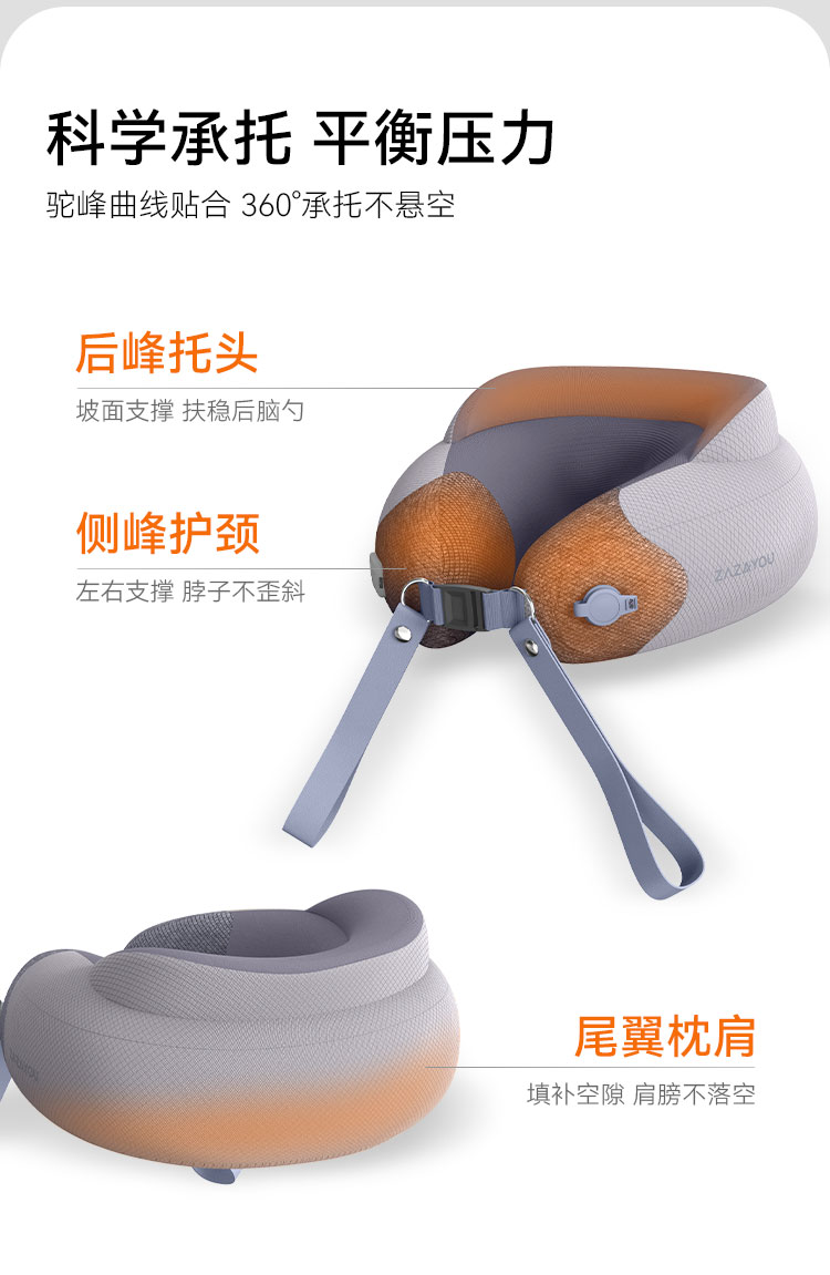 4、360°驼峰环脖设计,坐着也能睡,稳稳托住脖颈,旅途酣睡。