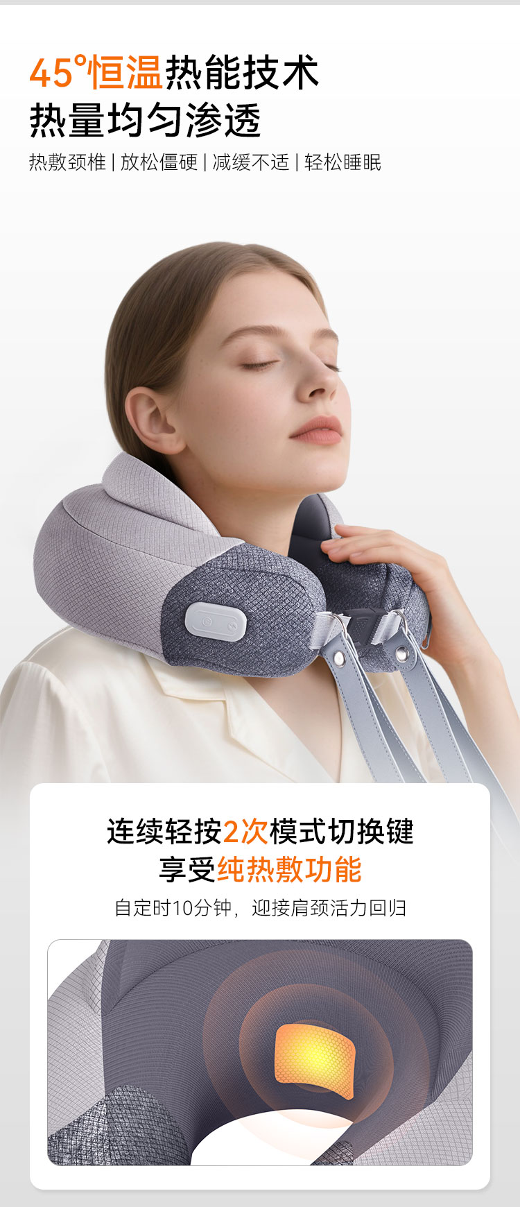 3、恒温 45˚C热敷,热量快速渗透肌底,放松僵硬肩颈。