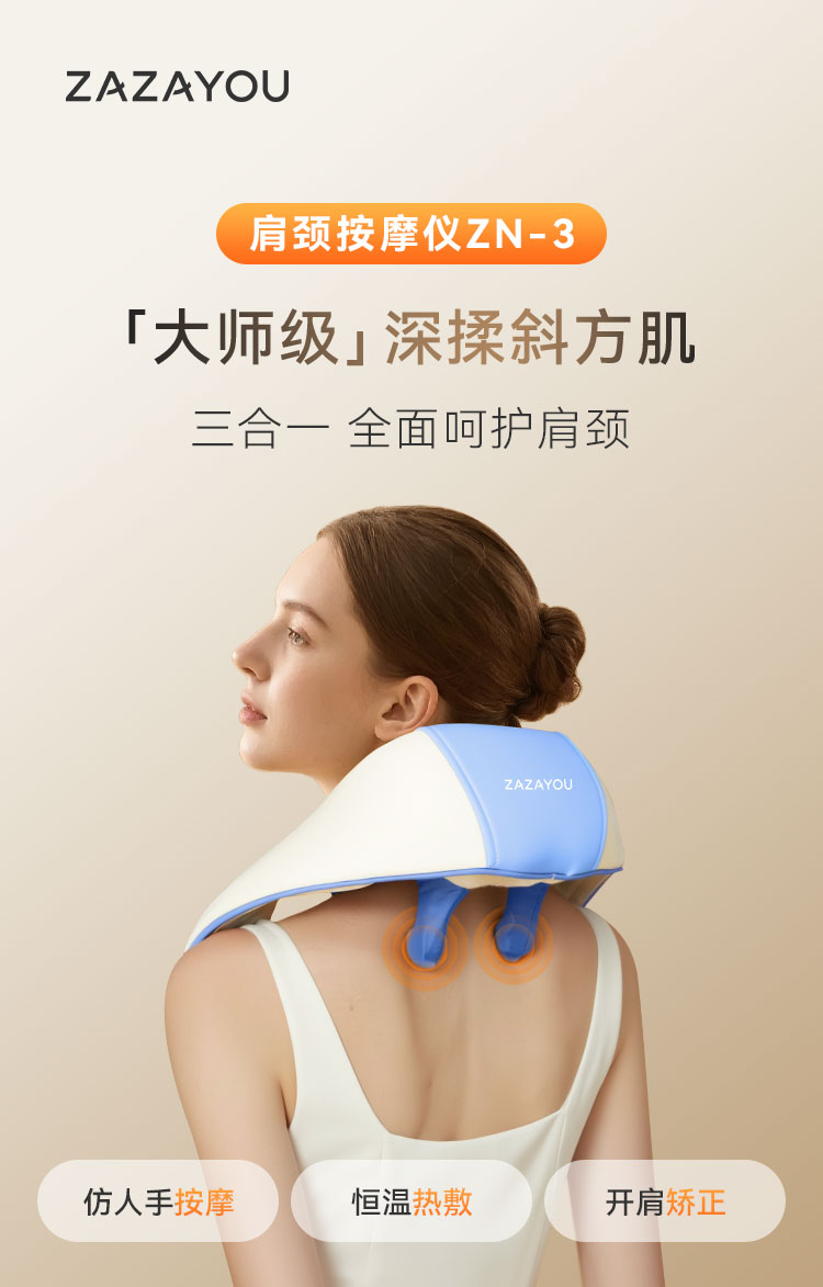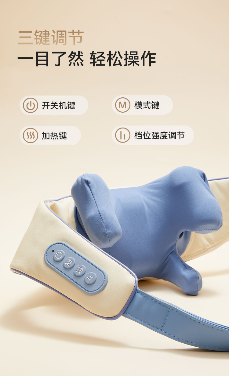 2、模拟人手虎口八字抓揉,按摩力度更大,可按斜方肌,深度按摩效果更佳;